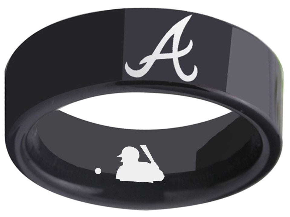 Atlanta Braves Ring MLB 8mm Black Tungsten Ring Sizes 6 - 13