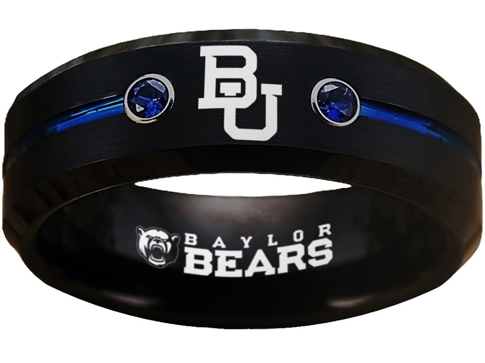 Baylor Bears Ring BU Baylor Black & Blue CZ Wedding Band | Sizes 6-13 – Exclusive Inspirations