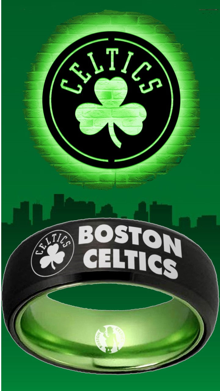 Boston Celtics Ring Clover Black & Green NBA Wedding Ring | Sizes 6-13 – Exclusive Inspirations