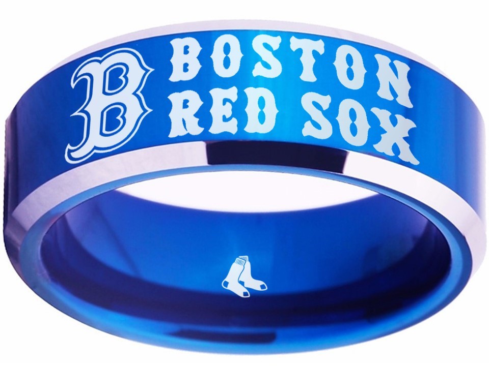 Boston Red Sox Ring Red Sox Wedding Ring Blue & Silver Ring Size 4 - 17