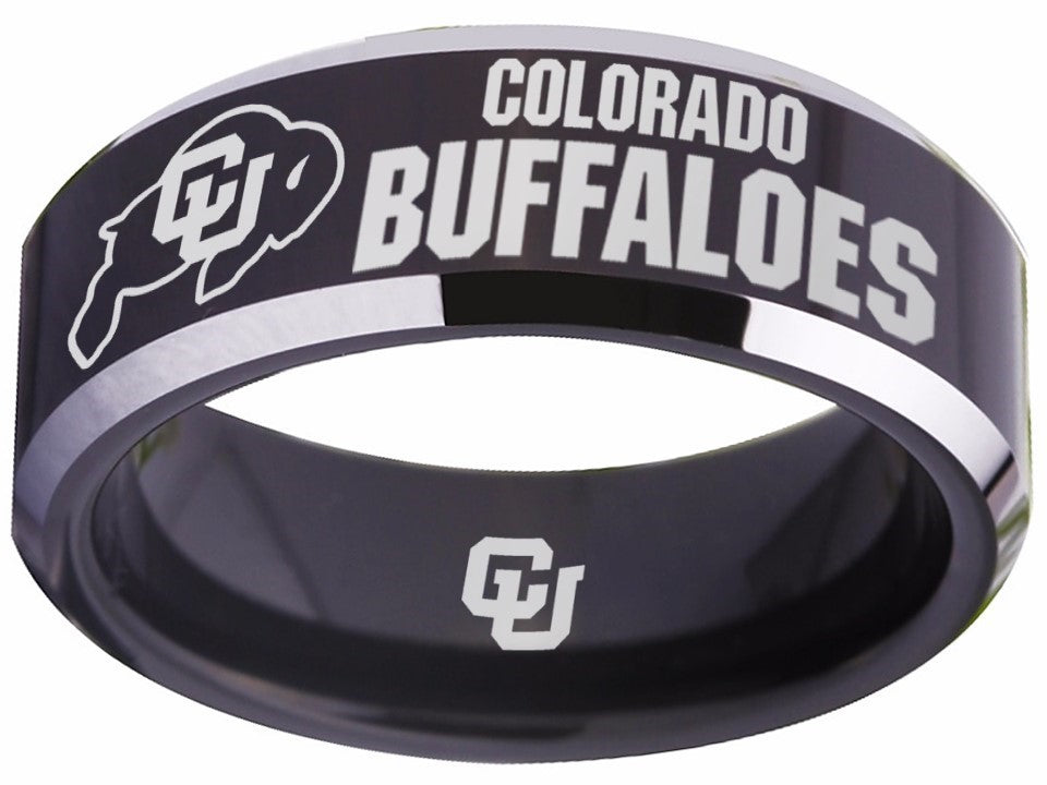 Colorado Buffaloes Ring Black and Silver Wedding Band | Sizes 4-17 – Exclusive Inspirations