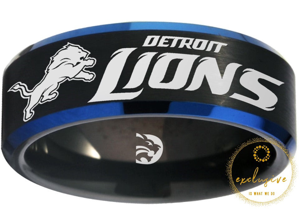 Detroit Lions Ring Black & Blue Wedding Band | Sizes 6-13 – Exclusive Inspirations