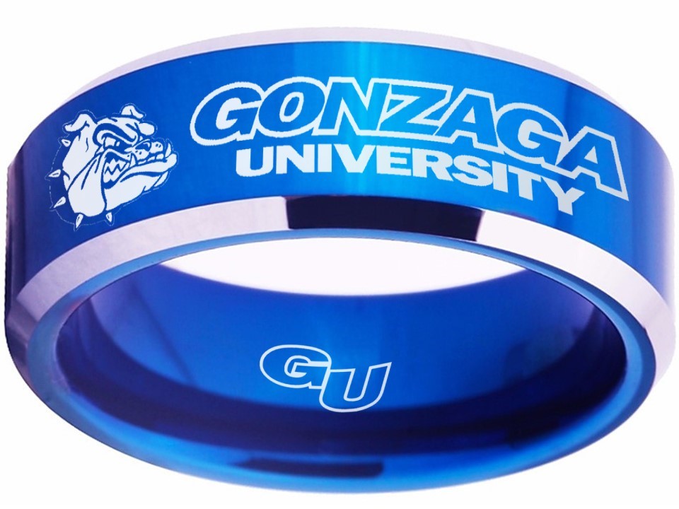 Gonzaga University Ring Bulldogs Blue & Silver Wedding Ring Sizes 4 - – Exclusive Inspirations