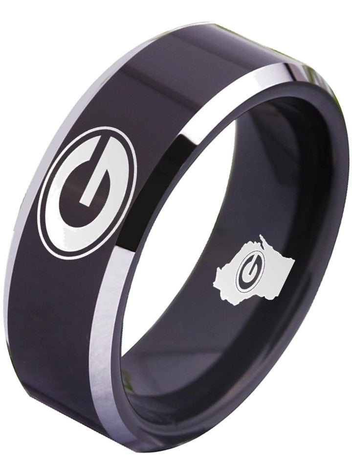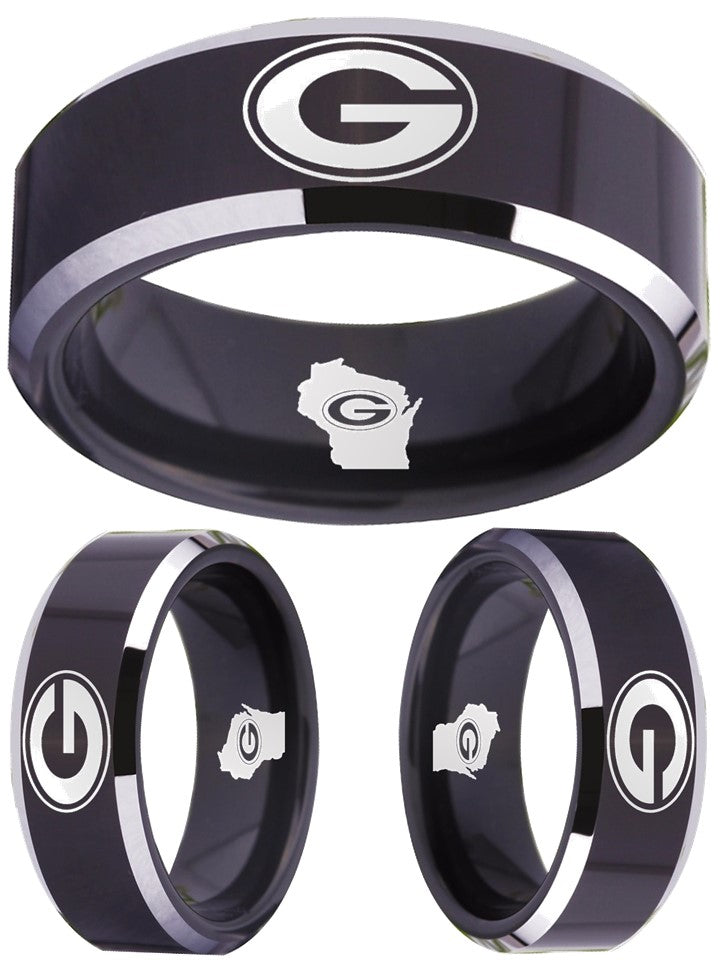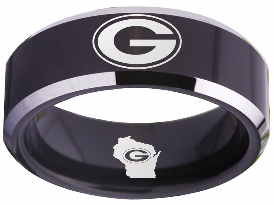 Green Bay Packers Ring Black & Silver Wedding Ring | Sizes 4-17