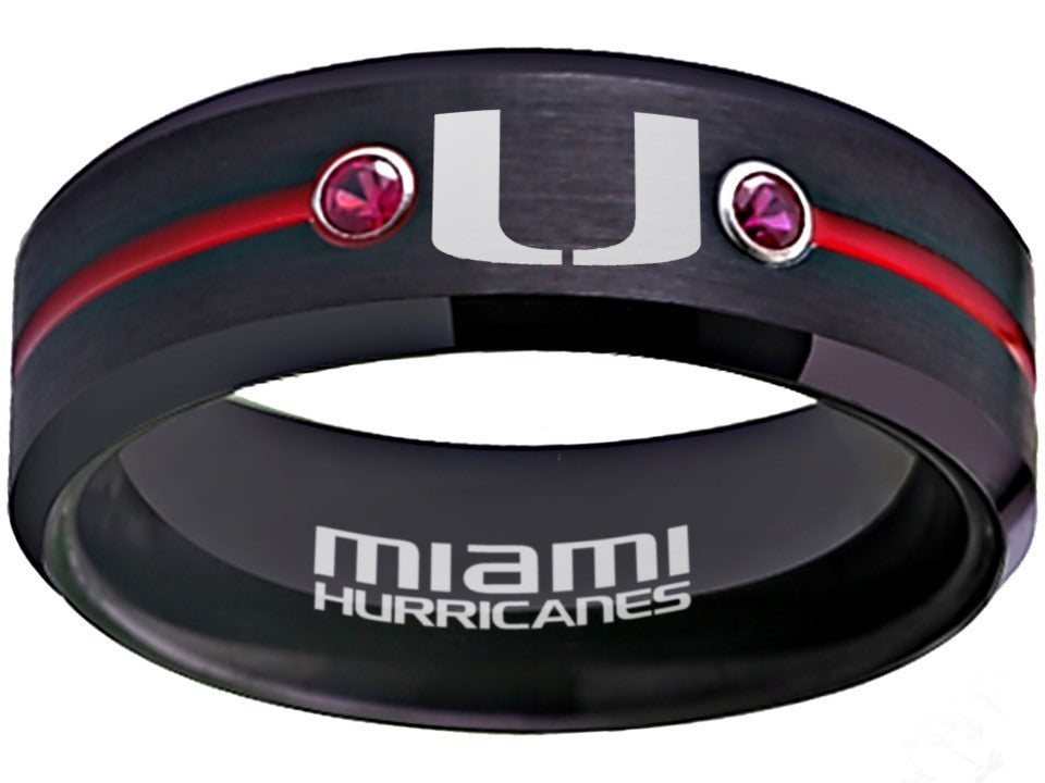 Miami Hurricanes Ring Black & Red CZ Wedding Band | Sizes 6-13 – Exclusive Inspirations