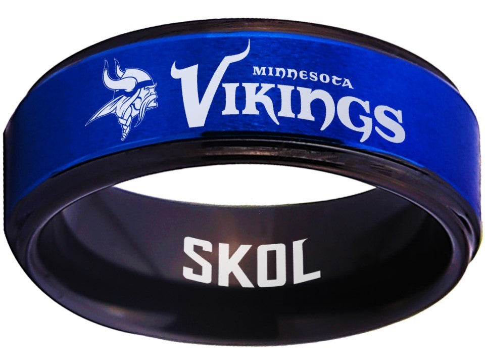 Minnesota Vikings Ring Blue and Black Wedding Band | Sizes 5-15 – Exclusive Inspirations
