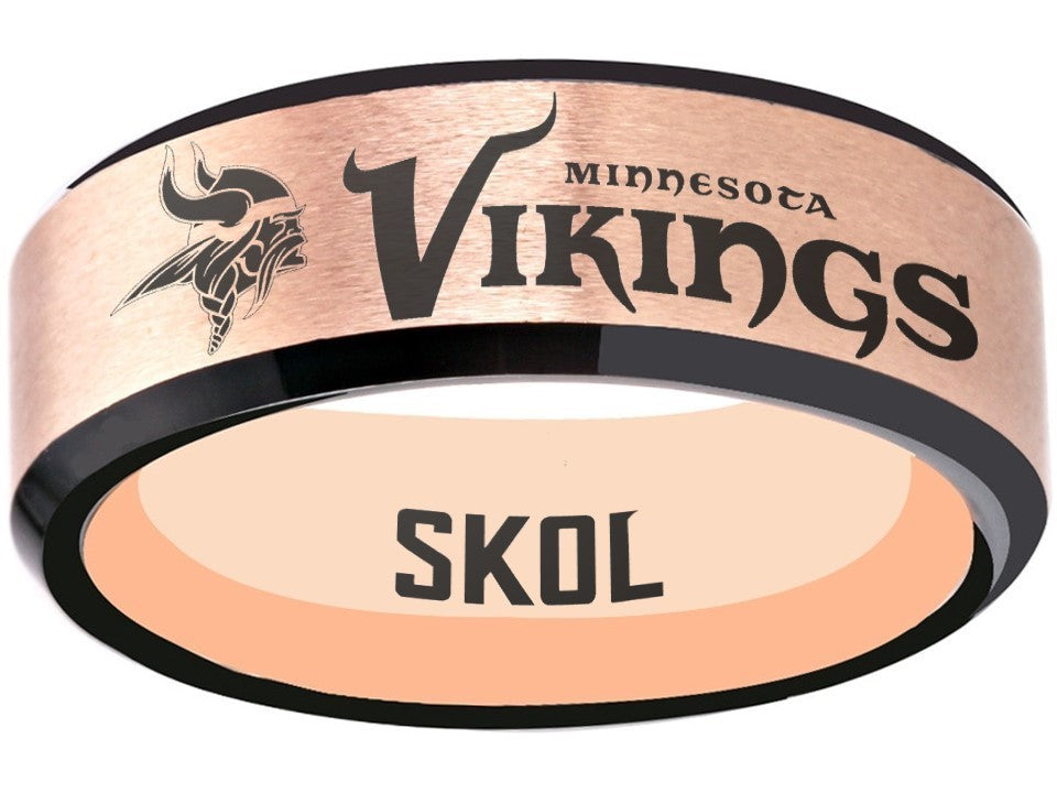 Minnesota Vikings Ring Rose Gold & Black Wedding Band | Sizes 6-13 – Exclusive Inspirations