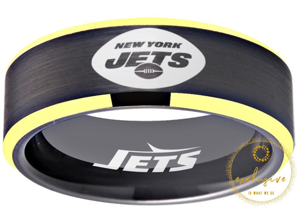 New York Jets Ring Black & Gold Wedding Ring Sizes 6 - 13 #jets #nyjets