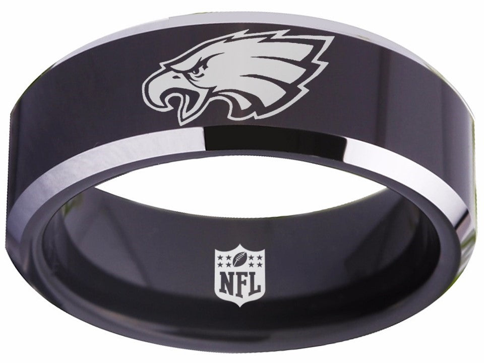 Philadelphia Eagles Ring Black & Silver Wedding Band | Sizes 4-17 #eagles