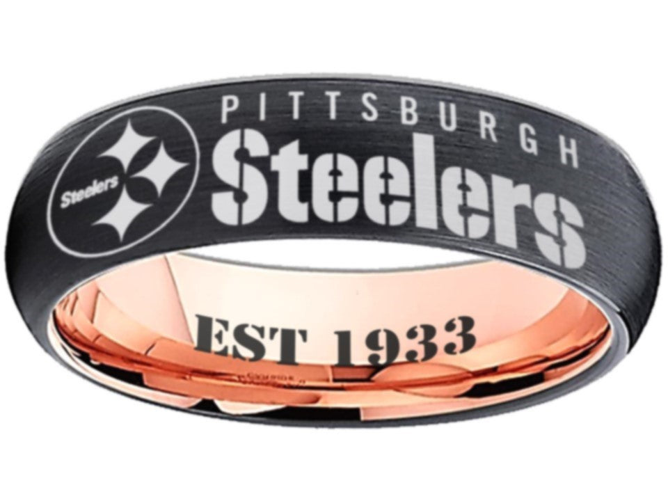 Pittsburgh Steelers Ring 6mm Black & Rose Gold Wedding Band | Sizes 6-13 #pittsburgh #steelers
