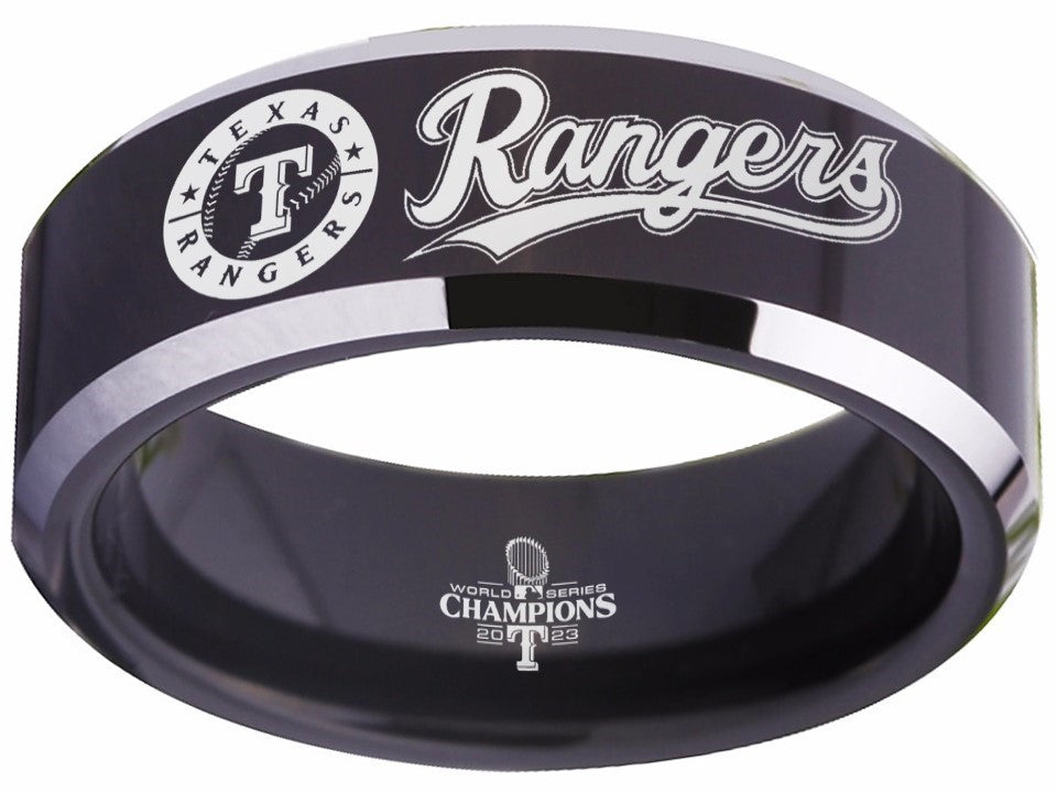 Texas Rangers Ring Championship Ring Black and Silver Wedding Band | Sizes 4-17 – Exclusive Inspirations