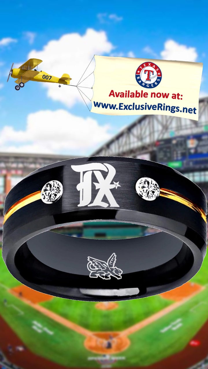 Texas Rangers Ring City Connect Black and Gold CZ Wedding Band Style Ring | Sizes 6-13 – Exclusive Inspirations