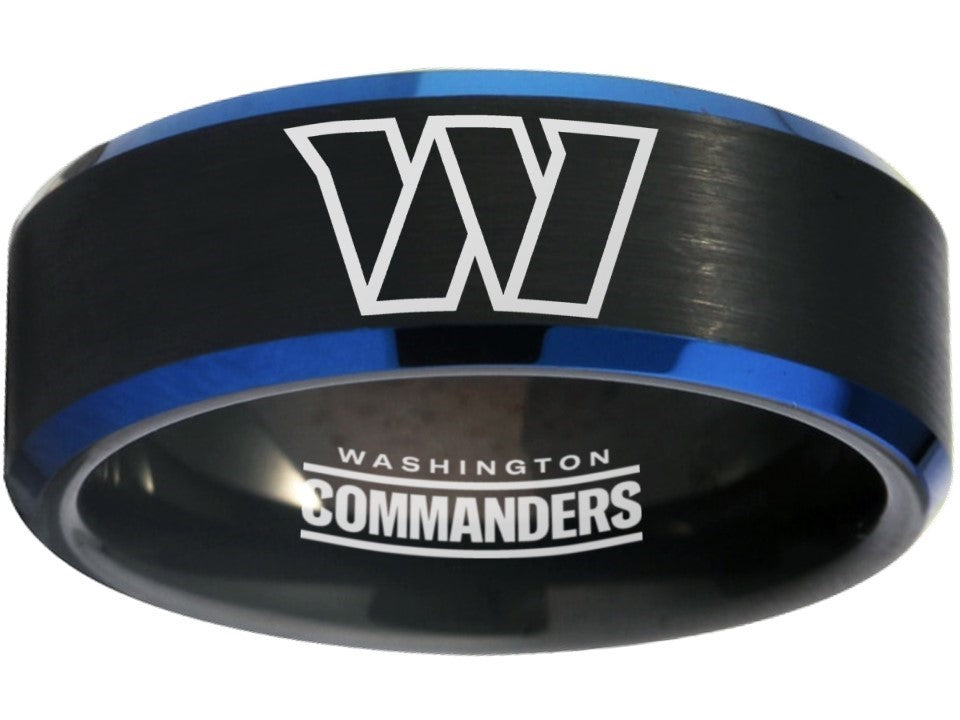 Washington Commanders Ring 8mm Black & Blue Tungsten Wedding Ring #COM – Exclusive Inspirations