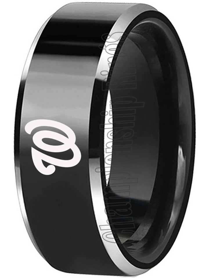 Washington Nationals Ring Tungsten Band 8mm Silver Wedding Ring Sizes 5 - 15 NEW