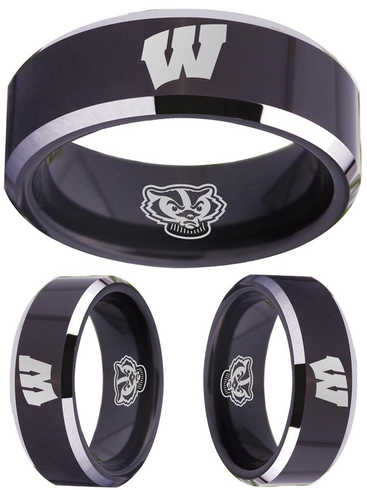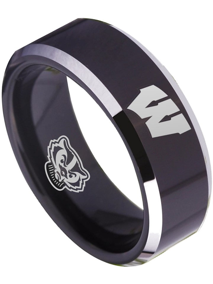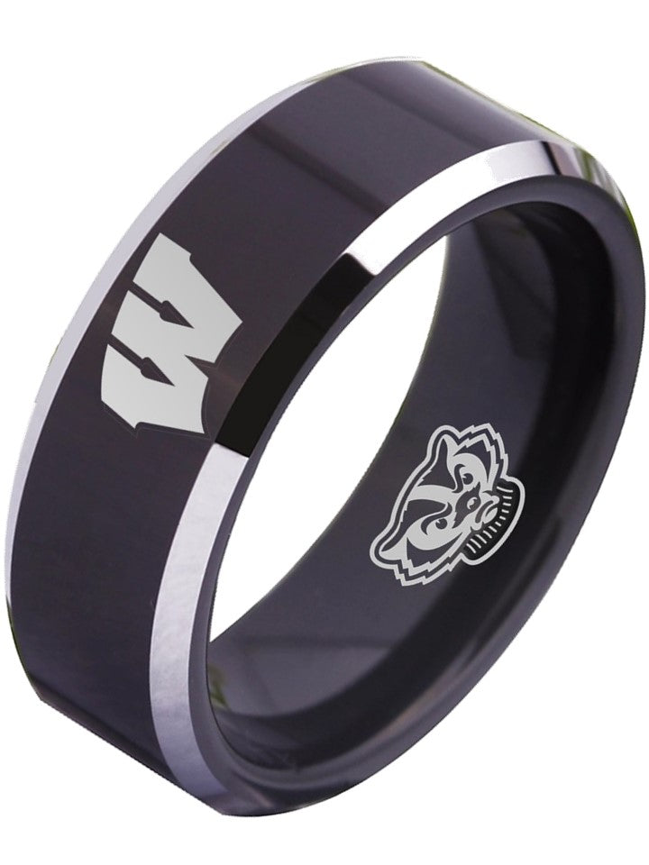Wisconsin Badgers Ring Black Ring Tungsten NCAA #badgers