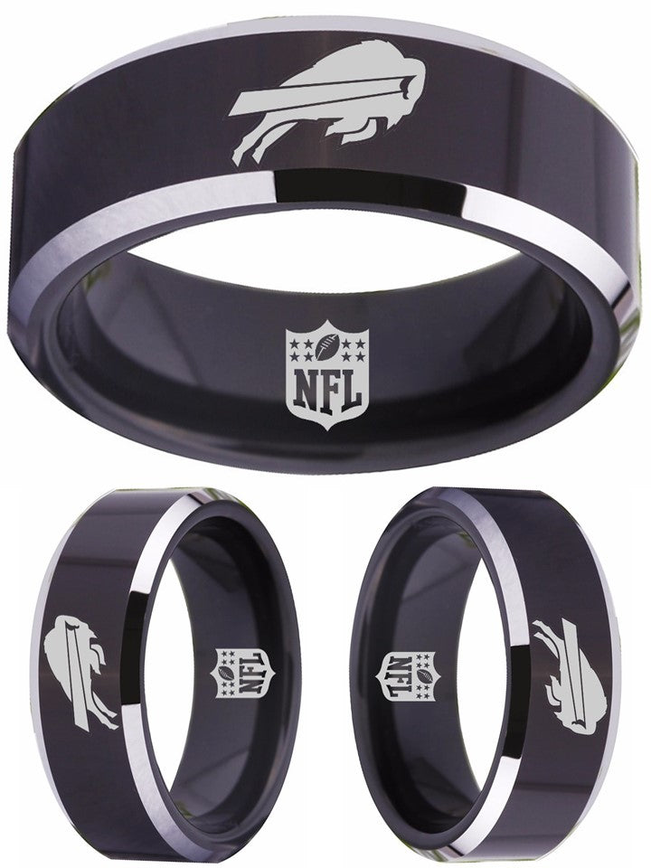Buffalo Bills Ring Bills Black & Silver Wedding Band | Sizes 4-17 – Exclusive Inspirations